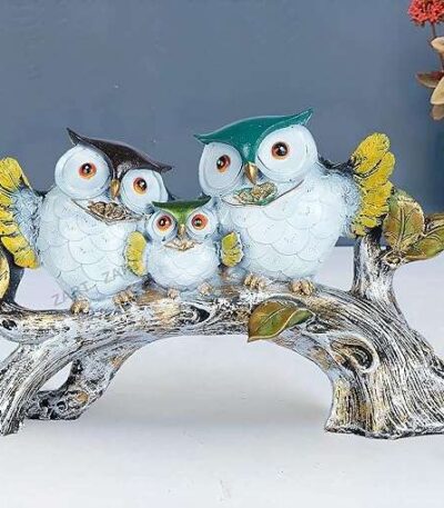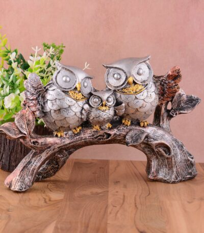 Owl Family Sitting on Tree Decorative Bird Showpieces Statue for Home Decor Living Room Bedroom Wall Shelf Table Top Garden Decoration Items -1