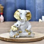 Small Elephant Family Mom and Baby Sculpture for Home Decor Showpiece Figurine
