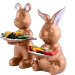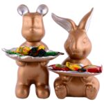 Set of 2 Rabbits in Golden Decorative Showpiece for Home Decor Showpiece | Home Kitchen Decor | Office Decorative Item – 13 cm