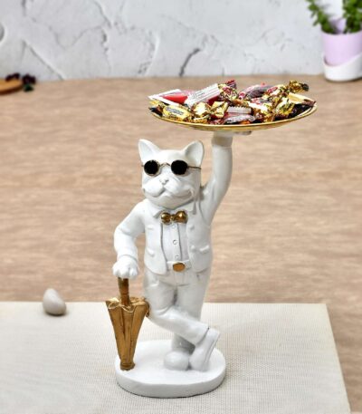 Cat with Hat Statue for Storage Purpose for Home Decor Showpiece Figurine